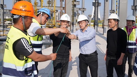 何宇健一行來到市域快速路海鹽、平湖、城東路(嘉善)射線工程,市區(qū)快速路環(huán)線三期一階段工程及南湖未來廣場(chǎng)項(xiàng)目施工現(xiàn)場(chǎng),檢查項(xiàng)目建設(shè)領(lǐng)域安全生產(chǎn)工作。